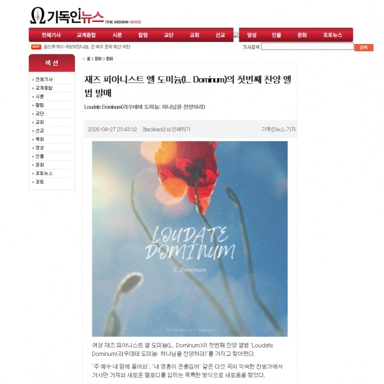 [기사] 재즈 피아니스트 엘 도미늄(L. Dominum)의 첫번째 찬양 앨범 발매(기독인뉴스)