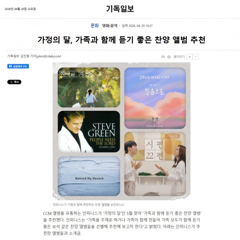 [기획기사] 가정의 달, 가족과 함께 듣기 좋은 찬양 앨범 추천(기독일보)